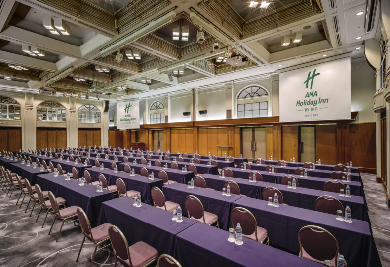 特徴的なのは土日のバンケット利用のしやすさで、他施設で婚礼需要が高い曜日でも予約が可能。1年前からの計画的利用にも対応します。館内には50~300㎡のバンケットルームが5室あり、映像設備完備。3階は300㎡の大空間を貸切利用でき、28階からは羽田空港やレインボーブリッジを望む絶景が楽しめます。132室の客室にはスイートも備え、長期滞在者向けにジムやランドリーも完備。さらに1階には25,000冊を揃えた「ライブラリーラウンジ」があり、電源・Wi-Fi完備の時間貸しスペースとしてビジネス利用に最適です。アクセスの良さ、週末の柔軟性、景観と機能を兼ね備えたMICE対応ホテルです。