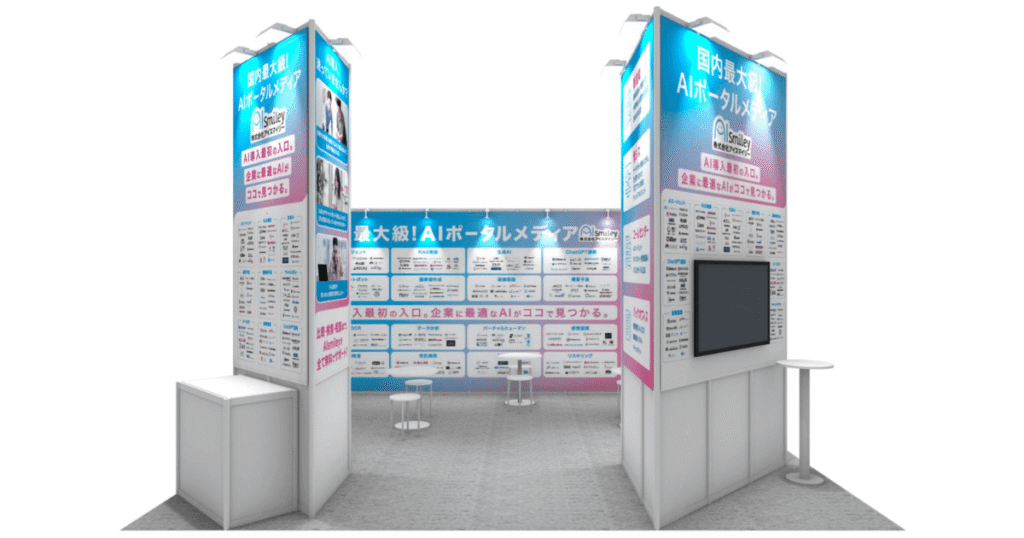 AIポータルメディア「AIsmiley」の活用方法を中心に、企業の現場課題に即したAI導入相談を随時受け付けます。生成AIやAIエージェント、画像認識・予測AIなどの最新トレンドを、導入プロセスやユースケースと併せて分かりやすく解説します。会場では、はじめての担当者向け6ステップ導入ガイド、AIエージェントの基礎をまとめた完全ガイド、社内人材育成に役立つリスキリングロードマップなど、検討段階から実装・運用までを通貫支援する資料群を配布予定です。媒体としての情報収集・比較のコツや、ベンダー選定の勘所も提示し、相談内容に応じて具体的な進め方や社内合意形成のポイントを提示します。現場で使える知見を短時間で知ることのできるブース構成です。(10/3更新)