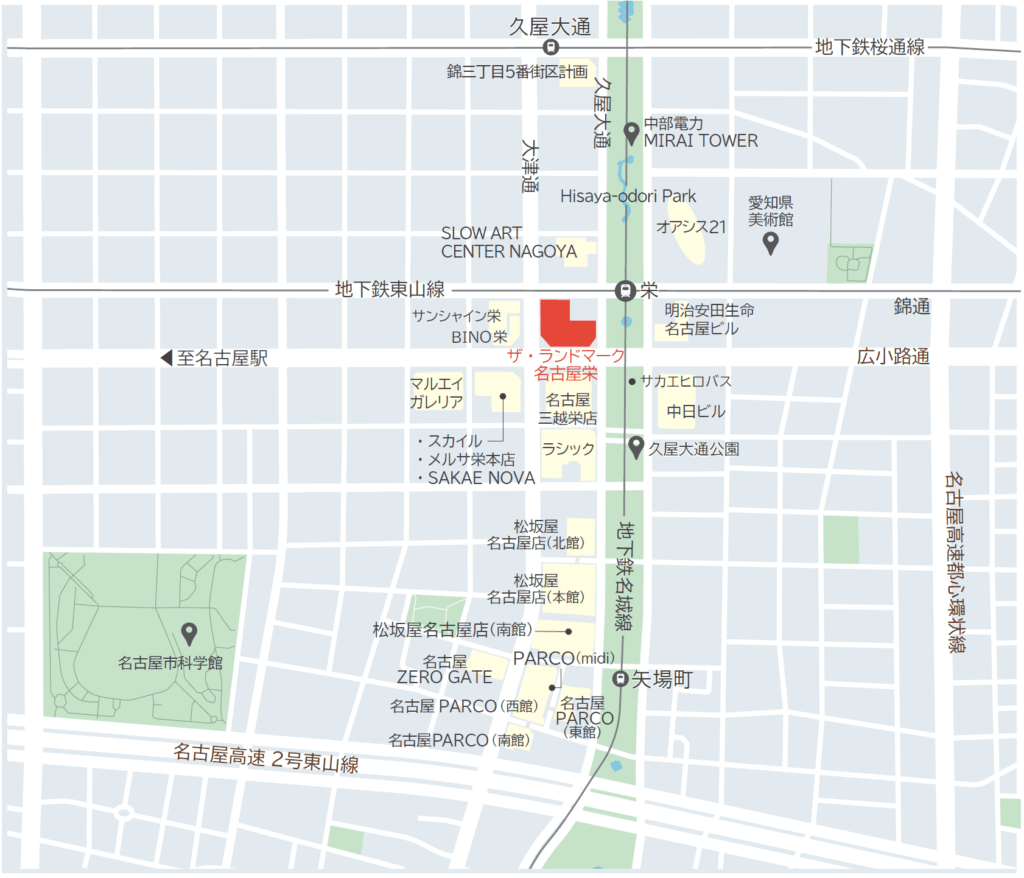 交通地下鉄東山線・名城線「栄」駅直結
