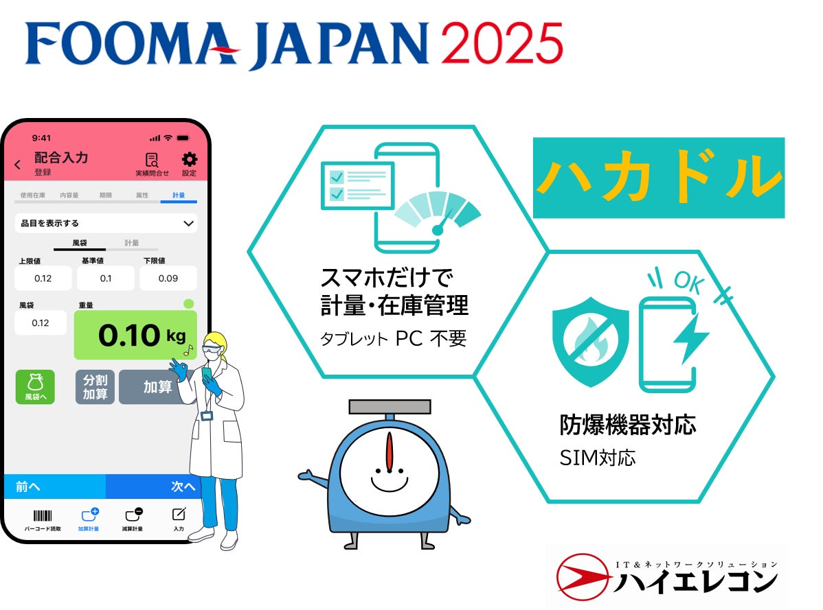スマホ型計量ナビゲーションシステム 『ハカドル』を出展。現在開発中で2025年夏に正式リリースを予定されています。製造現場の計量作業をスマホで丸ごとナビゲートし、手順に沿った操作でミスやロスを削減。計量・投入・記録を一元管理し、リアルタイムで進行状況を可視化します。防爆・SIM対応、クラウド運用も可能で、誰でもスムーズに同じ品質を実現できるシステムです。(6/2更新)