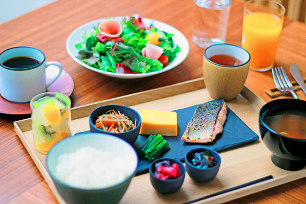 朝食で出される味噌汁、梅干しや漬物。加えてシェフによるオリジナル味噌ドレッシングは、「販売して欲しい」というリクエストが絶えないほど人気。それらは、『郡司味噌漬物店』の製品を使用しています。