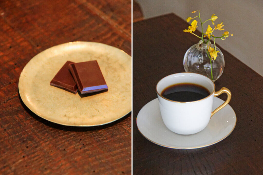 ここで珈琲をいただくと、以降、他店で「とりあえずコーヒー」というオーダーを出来なくなるほどの別物だと気づきます。作り手が同じということもあり、チョコレートとのマリアージュも完璧。珈琲と一緒にいただくだけでまるで軽食の後のような満足感を得ることができます。まさに五感を揺さぶる一杯であり喫茶なのです。