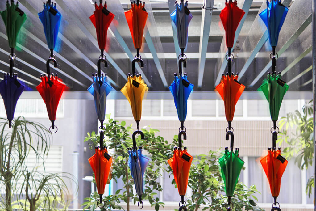 とくに1階のロビーラウンジから2階のテラスに施される地元企業やショップとのディスプレイコラボは必見。梅雨の時期は、上野の傘職人の店『東京ノーブル(Tokyo noble)』のミニチュア傘、夏は『篠原まるよし風鈴』の風鈴が涼しい音色を奏でます。そうした風景は、長く続いた会議のあとなどの癒しになり、想い出の1ページとして強く残るはずです。