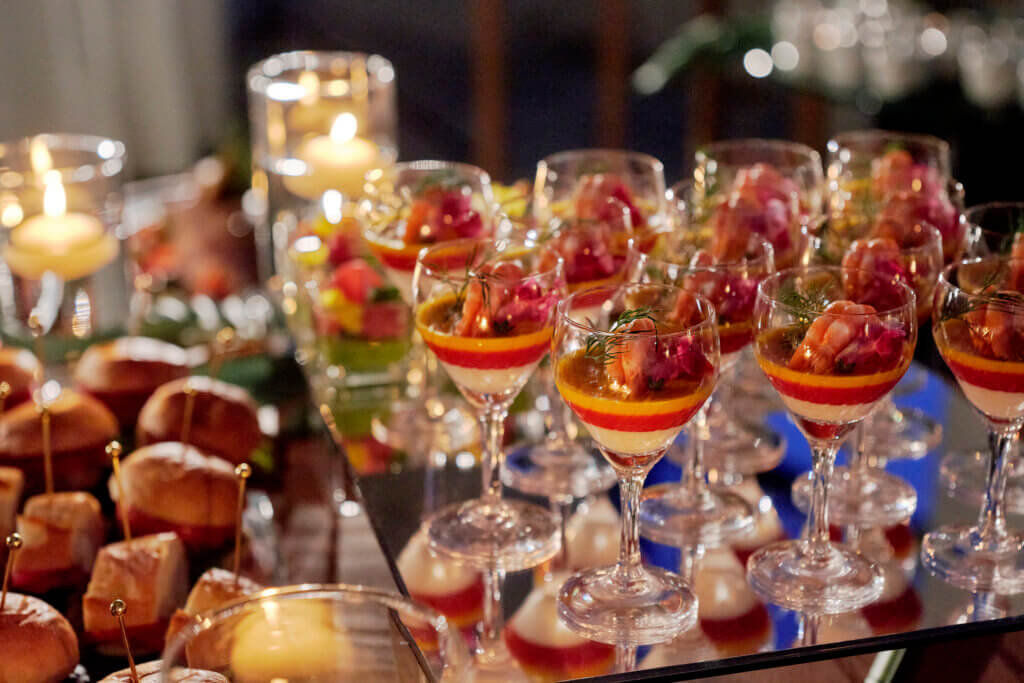 バンケットルームは全部で5箇所あり、広さは50~300㎡まで。全ての会場にはスクリーンとプロジェクター、またはモニターが常設されており、映像やプレゼンテーションが可能です。3階の会場は300㎡の広さを持ち、5.5mの天井高を誇ります。化粧室やクロークを含めフロア全体の貸し切り利用ができます。28階には羽田空港の飛行機やレインボーブリッジを一望できるパノラマビューの会場があり、懇親会での利用にも最適です。3階で会議を行った後、景色を楽しめる28階で懇親会やパーティーを開催することができます。料理のクオリティも高く、正餐、ビュッフェ形式を問わず、高品質な料理を提供します。