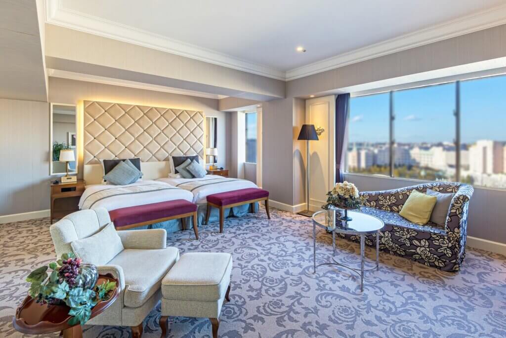 客室は全132室、すべて23階から27階の高層階に位置しています。スイートとジュニアスイートを備え、スイートからはお台場やレ インボーブリッジ、ジュニアスイートからは羽田空港の景色を楽しめます。宿泊客用のジムやランドリーも完備されており、長期滞在の方も快適に過ごせます。