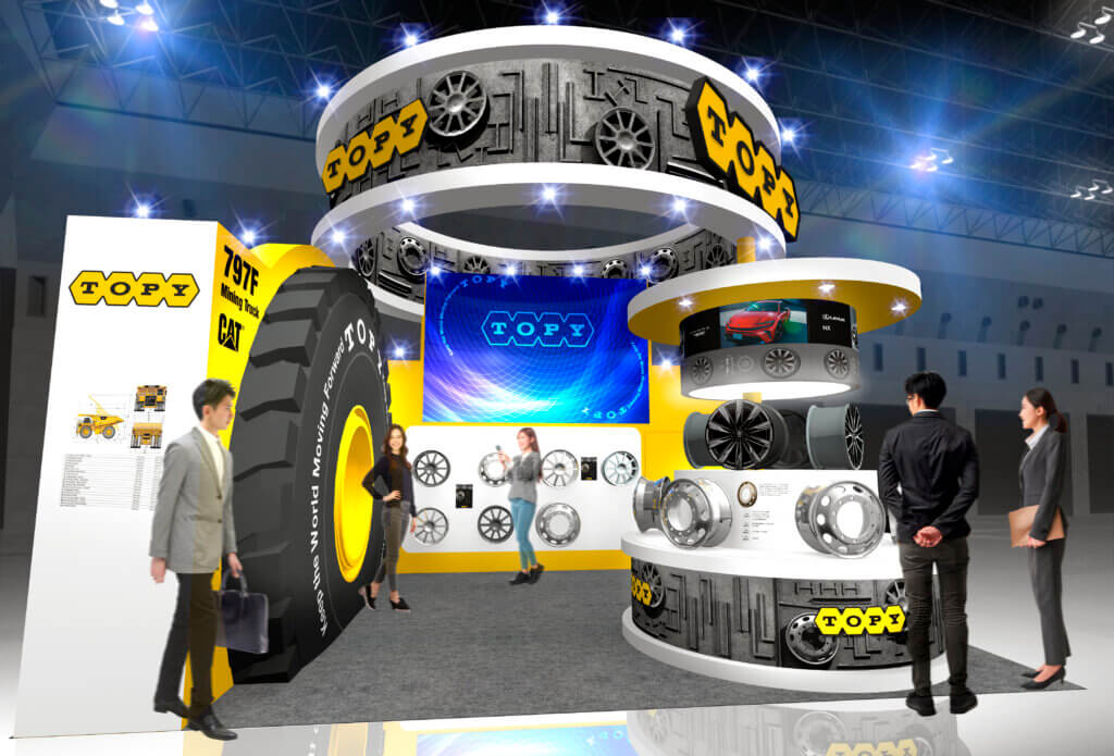 総合ホイールメーカーとしての強みを軸に、乗用車・商用車向けのスチール/アルミホイール計18点を展示します。ブースはホイールを想起させるリング形状を取り入れ、臨場感のある導線と演出で来場体験を高めます。壁面ビジョンでは会社概要や製造工程の映像を上映し、材料・成形・検査に至る品質づくりの要点を分かりやすく伝えます。新製品の特徴はプロジェクションマッピングで提示し、技術の狙いとメリットを短時間で理解できる構成とします。さらに、鉱山機械用の超大型ホイール「SGOR(Super Giant Off the Road Rim)」を模したフォトスポットを用意し、座って撮影できる体験で“輪”のスケール感を実感できるものになるということです。
