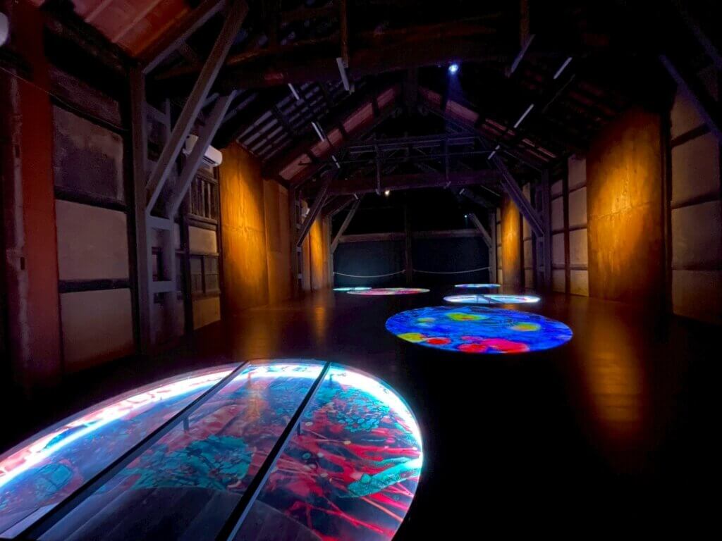 引田エリアには他にも、元酒蔵の空間を活かし、日本酒と醤油の発酵文化をモチーフに、光とインスタレーションで表現した作品がありました。この土地の産業と歴史を知れば知るほど、理解が深まる構成です。