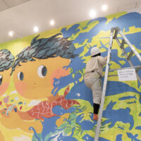 こども万博の会場に入って最初に目に入るのは「夢の絵トンネル」。全国の未就学児から集めた夢の絵が飾られています。来場者が「見ていてワクワクした絵」を1枚選び、QRコードを読み込んで投票。入賞者には豪華景品のプレゼントがあります。