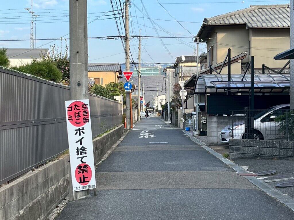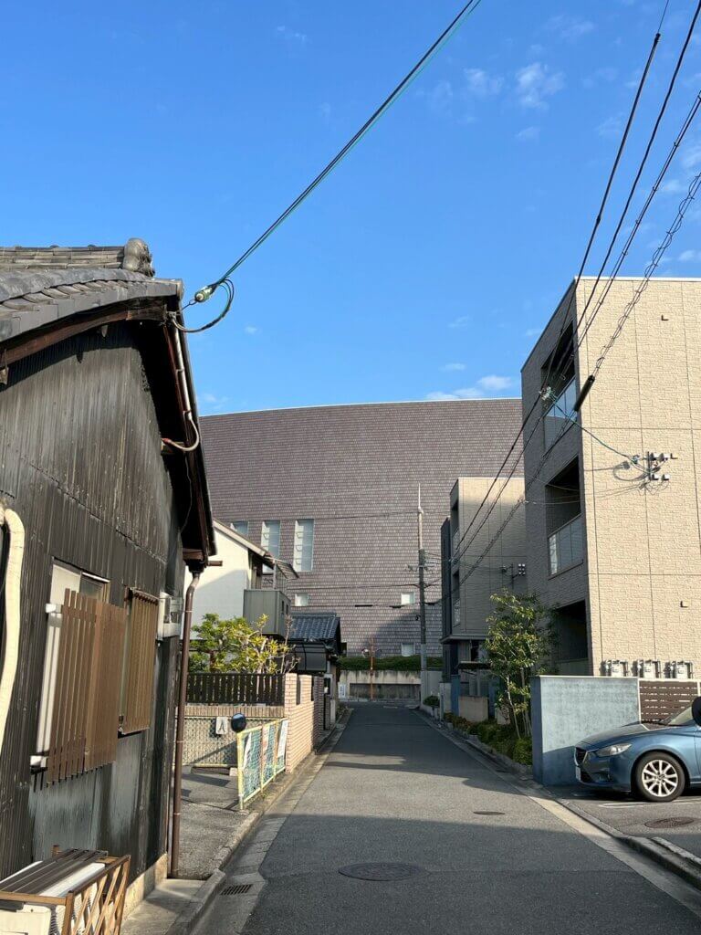 三条通ではなく、あえて住宅街の道を進みます。なぜか?それは写真奥に見える、あの建物をまっすぐに目指すためなのです。