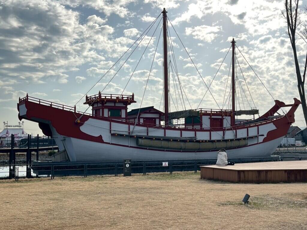 復元された遣唐使船。こんな船であの荒れ狂う海を中国まで渡ったのかと思いますよね。船には入れます、船好きさんはどうぞ。