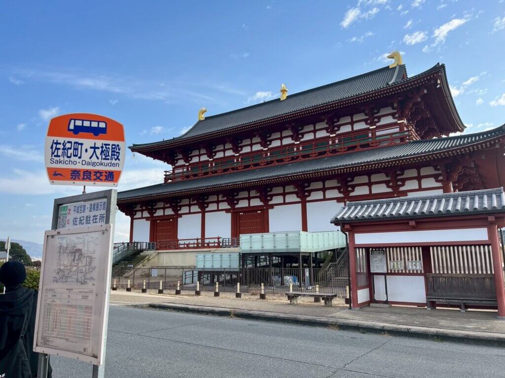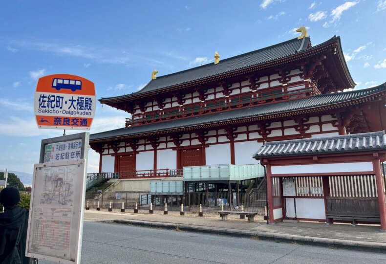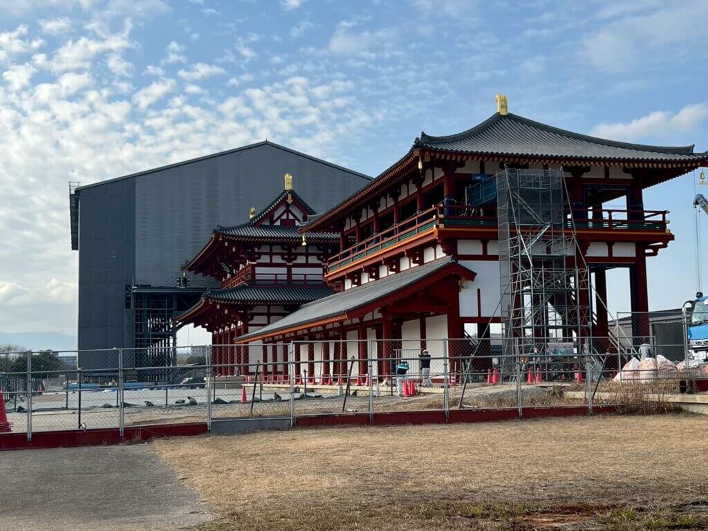大極殿の正面少し離れたところ。大極門と東楼(ひがしろう)も当時の姿を取り戻すべく復元が進みます。なんにもなかった頃も知ってますので、ずんずんと建物が復元されている様子を見ると感慨深い。当時の人々はよくもこれを当時の技術で建てたものですね。