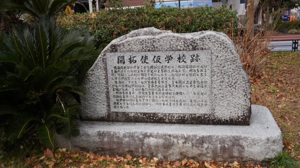 芝公園の端、開拓使仮学校跡の碑。明治5年に開設され、北海道開拓に必要な人材を育成する目的のものでした。開拓使女学校も併設されたそうです。