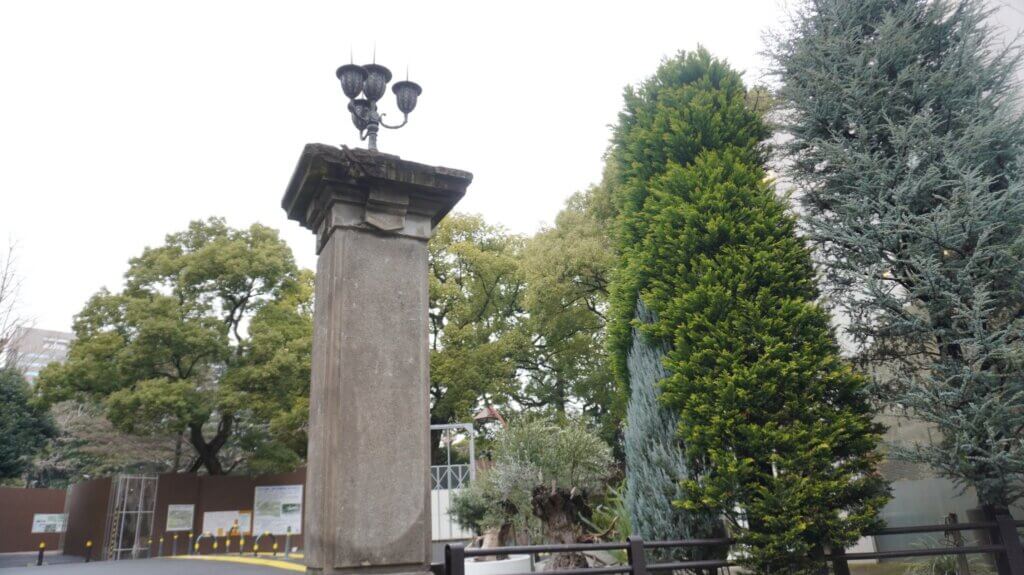 日比谷公園の表門・日比谷門の門柱。当時の絵葉書にも描かれた立派な門です。