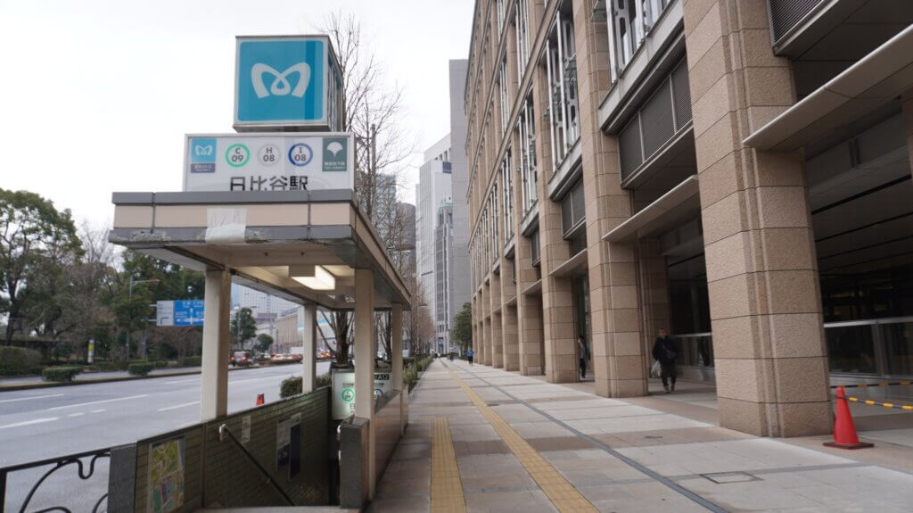日比谷駅。なんとも幅の細い入口です。