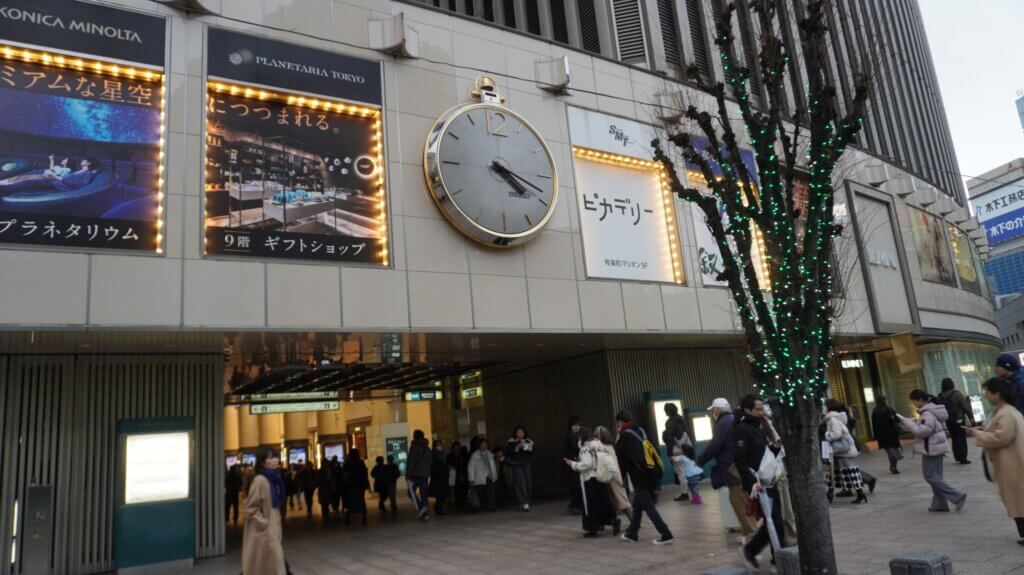 有楽町マリオン。正式には有楽町センタービルといい、1984年に開業した「有楽町の顔」みたいな存在です。買い物だけではなく、かつては映画館・劇場などの“観る”機能も一体になっていて、ホールもあります。建築も素晴らしいので時間があれば、ぜひ中をご覧ください。