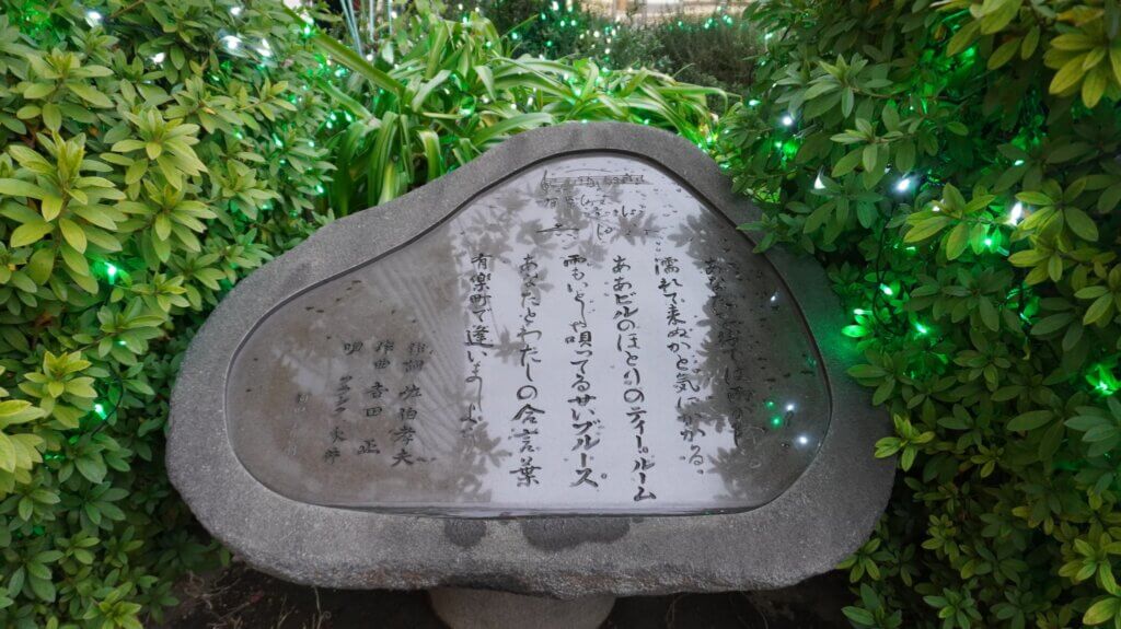 『有楽町で逢いましょう』歌碑。1957年にフランク永井が歌って大ヒットした歌謡曲。