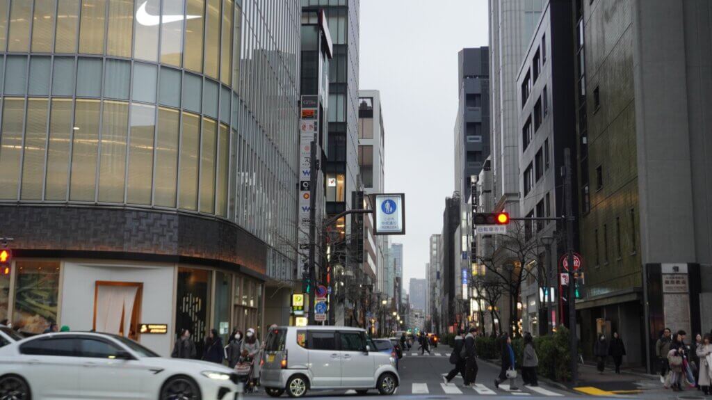 たそがれて雰囲気抜群の銀座を横目に。後ろ髪を引かれながら、前進します。