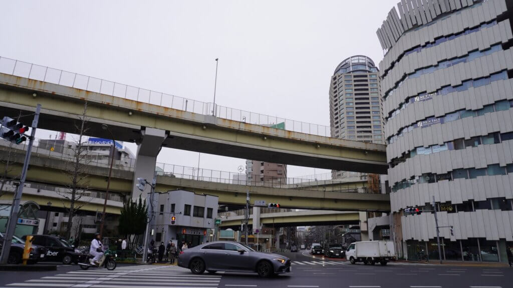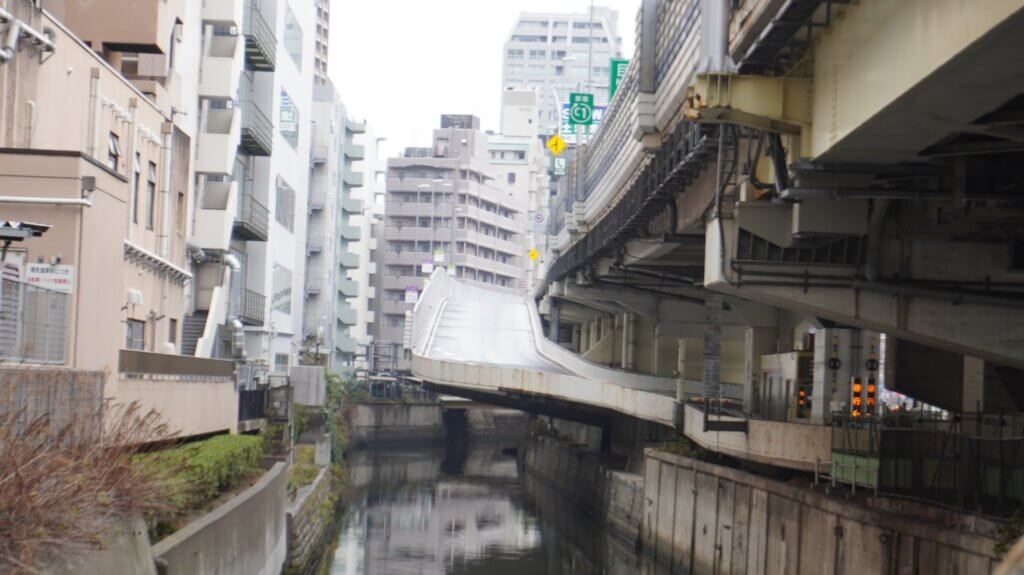 スタート地点は一の橋交差点。元禄年間、将軍綱吉の白金御殿造園に際し、架けられた「一之橋」が由来とされます。ジャンクションを望む都市風景がよいですね。