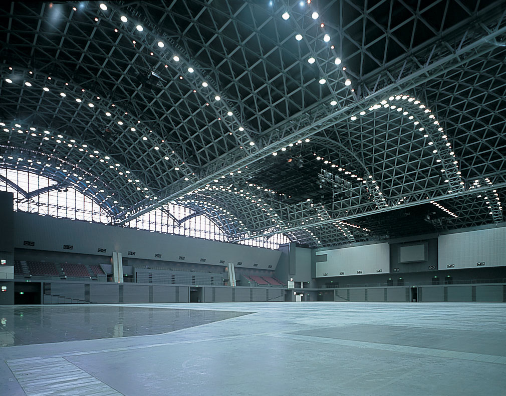 2025年より「北九州メッセ」へ愛称が変わった約8,000㎡の広大な無柱空間を誇る展示場。特徴は、床一面が強固な土間コンクリート敷きであること。重量物の展示や激しいスポーツ競技にも耐えうる設計です。アイススケートや、国際大会「バレーボールネーションズリーグ(VNL)」、「世界新体操選手権大会」、会場内にパークを造成する「ワールドスケートボードストリート」、サーカスの公演、さらには1万人規模を動員する大型コンサートまで。世界レベルのイベント誘致・開催に成功してきました。