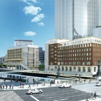 JR岐阜駅前と歩行者デッキで直結。名古屋からもJRで20分の近さ