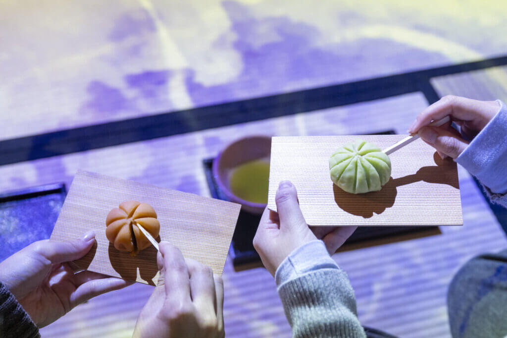 京都の玄関口である京都駅ビル東広場のアートテラスラウンジでは、抹茶と和菓子づくりの体験ワークショップが定期開催されます。旅の始まりや移動の合間に気軽に参加できるプログラムとして、訪れた人々を京都の深い文化体験へと導きます。
