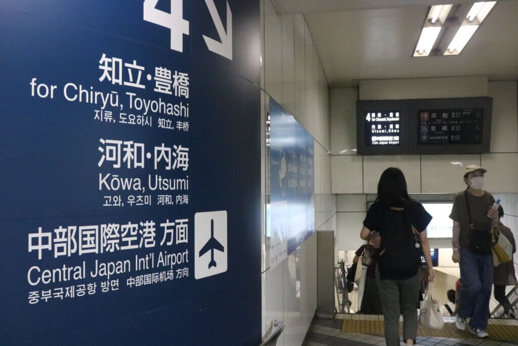 “中部国際空港行き”に乗ってしまえば終点が会場です。車内やホームの案内表示にも飛行機マークをつけていて、はじめての方にも分かりやすい導線を意識しています」
