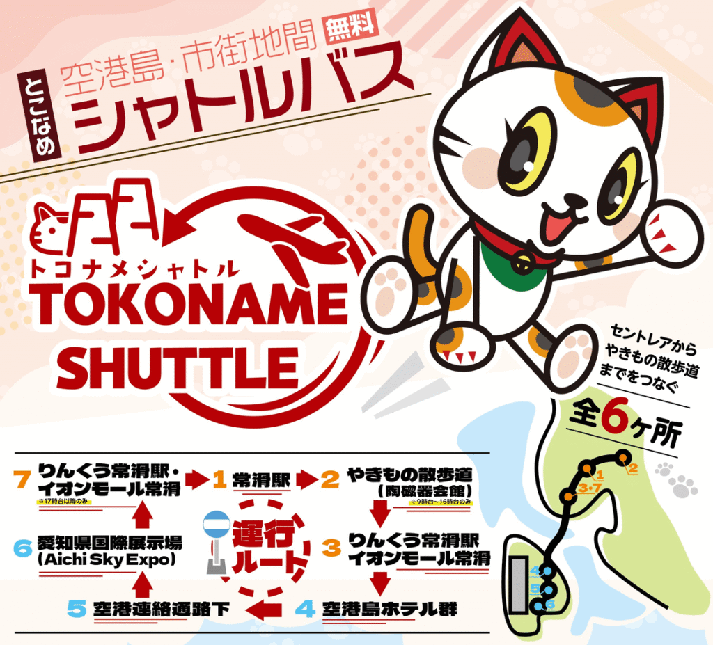 空港島と市内を結ぶ無料シャトルバス『トコナメシャトル』