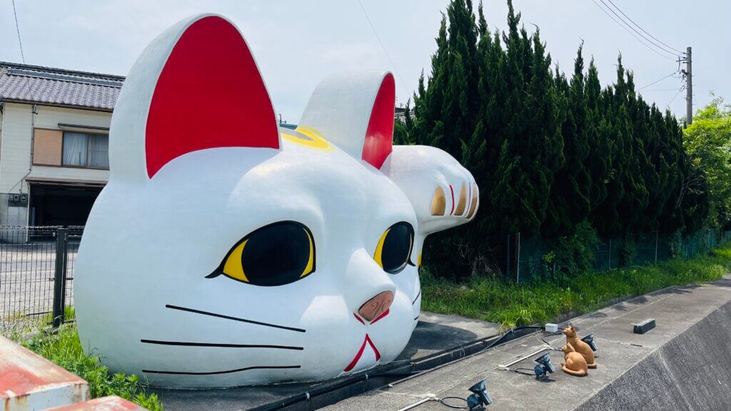 もうひとつの顔は「招き猫」。常滑は招き猫の生産量が日本一。街のシンボル「とこにゃん」(高さ約3.8m、幅約6.3m)は人気のフォトスポットです。