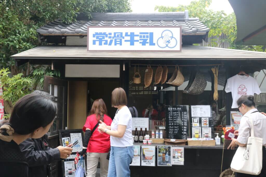 「倒焔式角窯(とうえんしきかくがま)」跡を眺めながらショッピング・スナックタイム。常滑牛乳アイスが人気。