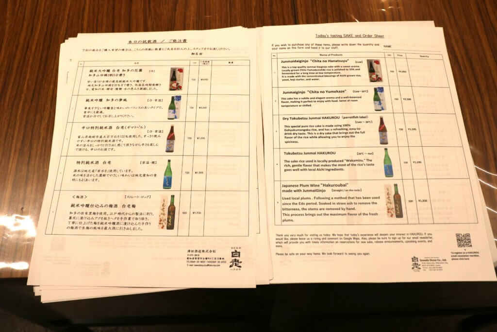 見学後、注文書を参加者に配布。欲しいものにチェックを入れるだけで、出るタイミングで商品を受け取れる仕組みです。