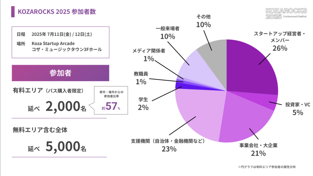 回を重ねるごとにイベントの規模は大きくなっており、2025年は過去最大となる延べ5,000名が来場しました。参加者の約57%が沖縄県外や海外からの来場者であり、全国およびアジア各地から注目を集めるイベントへと成長しています。