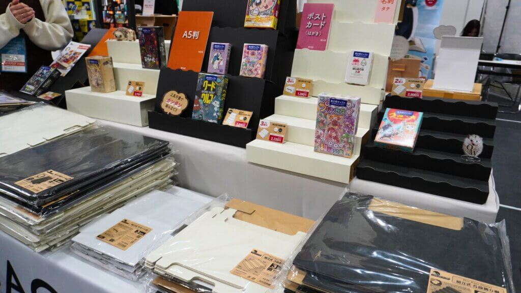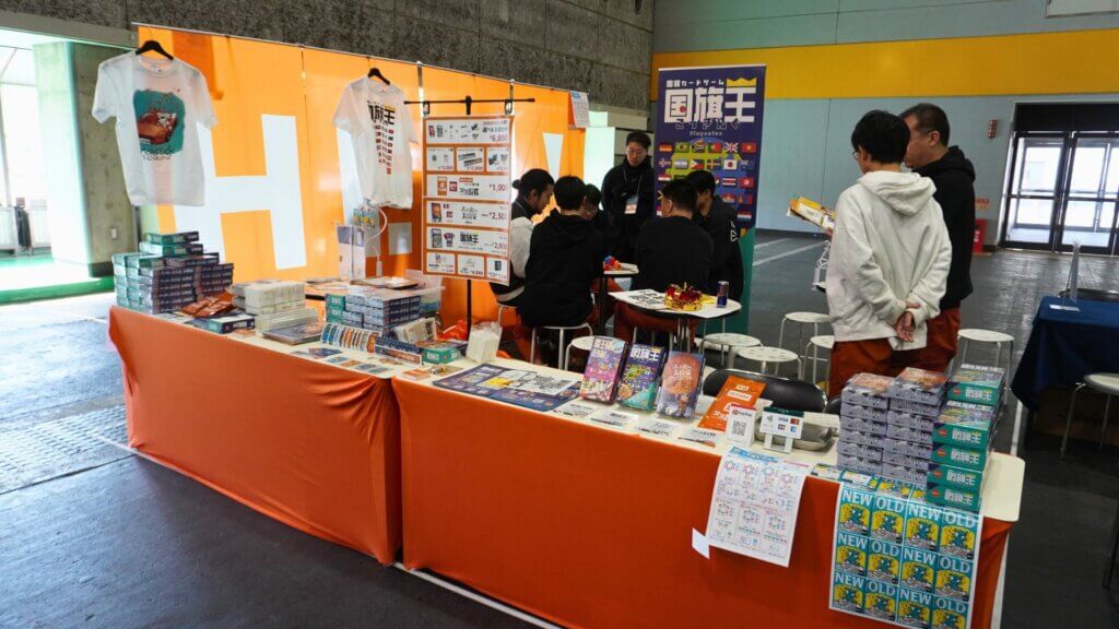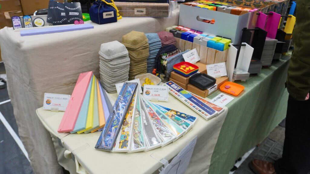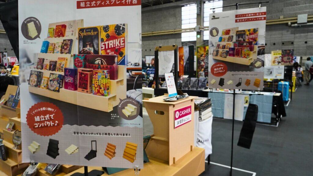 先ほど、HEY!さんのブースで『マッチ売りの大富豪』で遊ぶときに使ったカードスタンドがブースに並んでいました。自作のゲームでこんなオリジナルグッズが作れたら楽しそう、と思いますね。一般の来場者だけではなく、他の出展者さんからも注目を集めるのではないでしょうか。他にも様々なグッズが並んでいて、ボードゲームの広がりを感じます。今回はとてもいいブース位置だと、ブースのnabeさんが喜んでいらっしゃったのが印象的です。