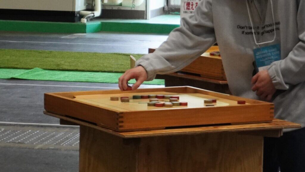 滋賀県彦根市の郷土ゲーム「カロム」ブース 「カロム検定」を実施