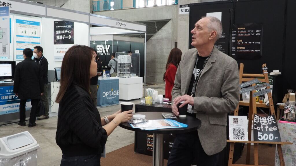 各社がブースで独自開催しているセミナーに足を止める人が多くいました。スピーカーが英語なら日本語で、日本語なら英語で通訳を入れたり翻訳画面を出したりと、多言語への配慮がされています。カンファレンスからの人の流れを読み、開催時刻が計算されていたことも、奏効していたと感じます。