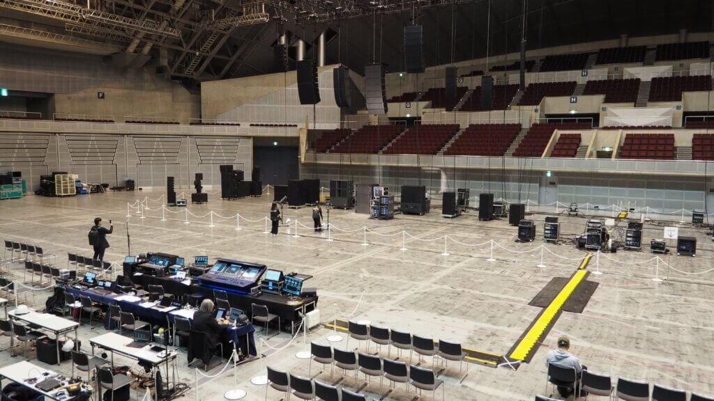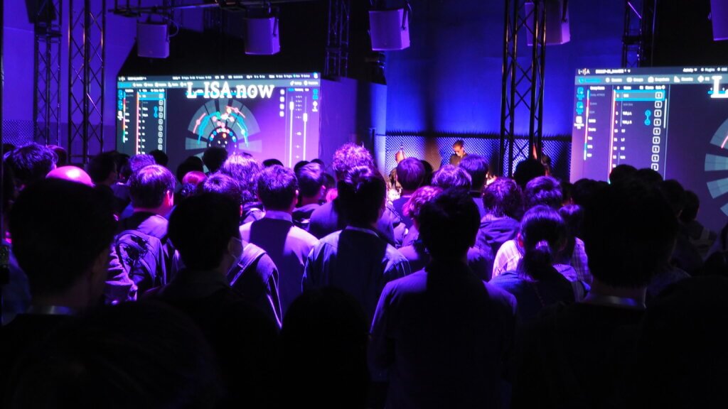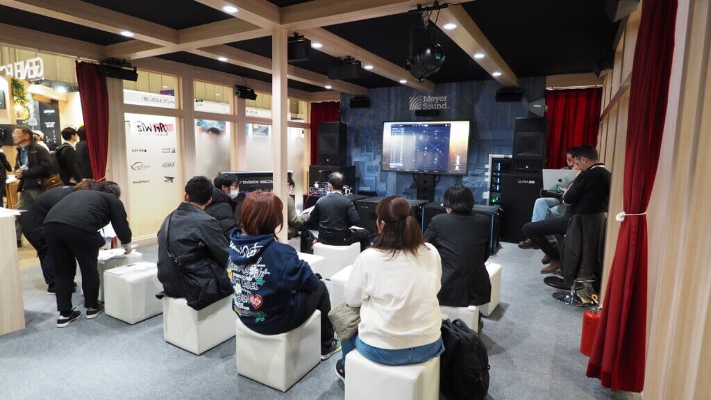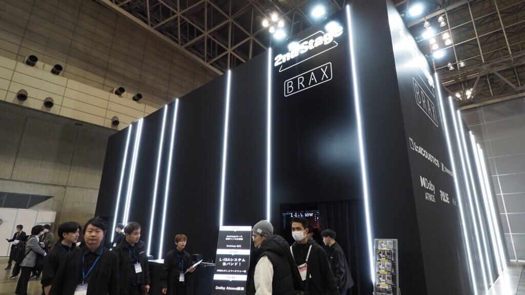 音響設備を扱う「セカンドステージ株式会社」のブース。イマーシブ音響システム「L-ISA」実演のために、大きな“黒い箱”が設置されていました。