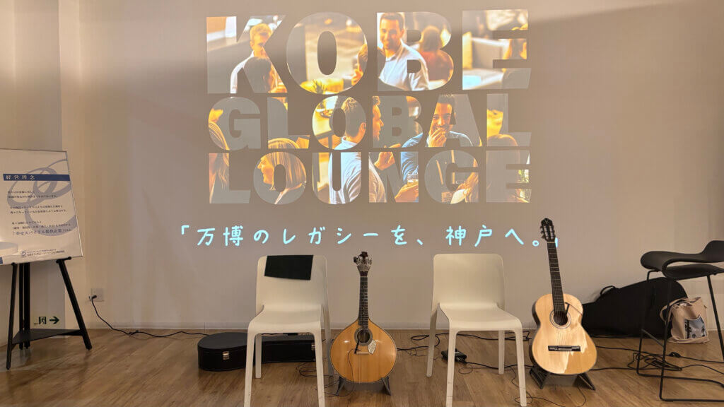 会場では、再会を喜ぶ声、万博の現場を振り返る笑い、神戸という街を外から見た率直な視点が交わされていました。ポルトガルギターの生演奏や即興の神戸PR企画といったコンテンツは、単なる演出ではなく、参加者同士の会話を生み出すための「材料」として機能していました。